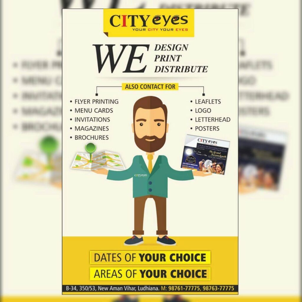 City Eyes is one stop solution for all your pamphlet advertising needs! Pamphlets, leaflets, flyers, brochures, catalogues — no matter what you call them, they’re all our expertise. Make a lasting impression and convert the population of Ludhiana into your customers with our excellent flyer design, printing, and distribution services.